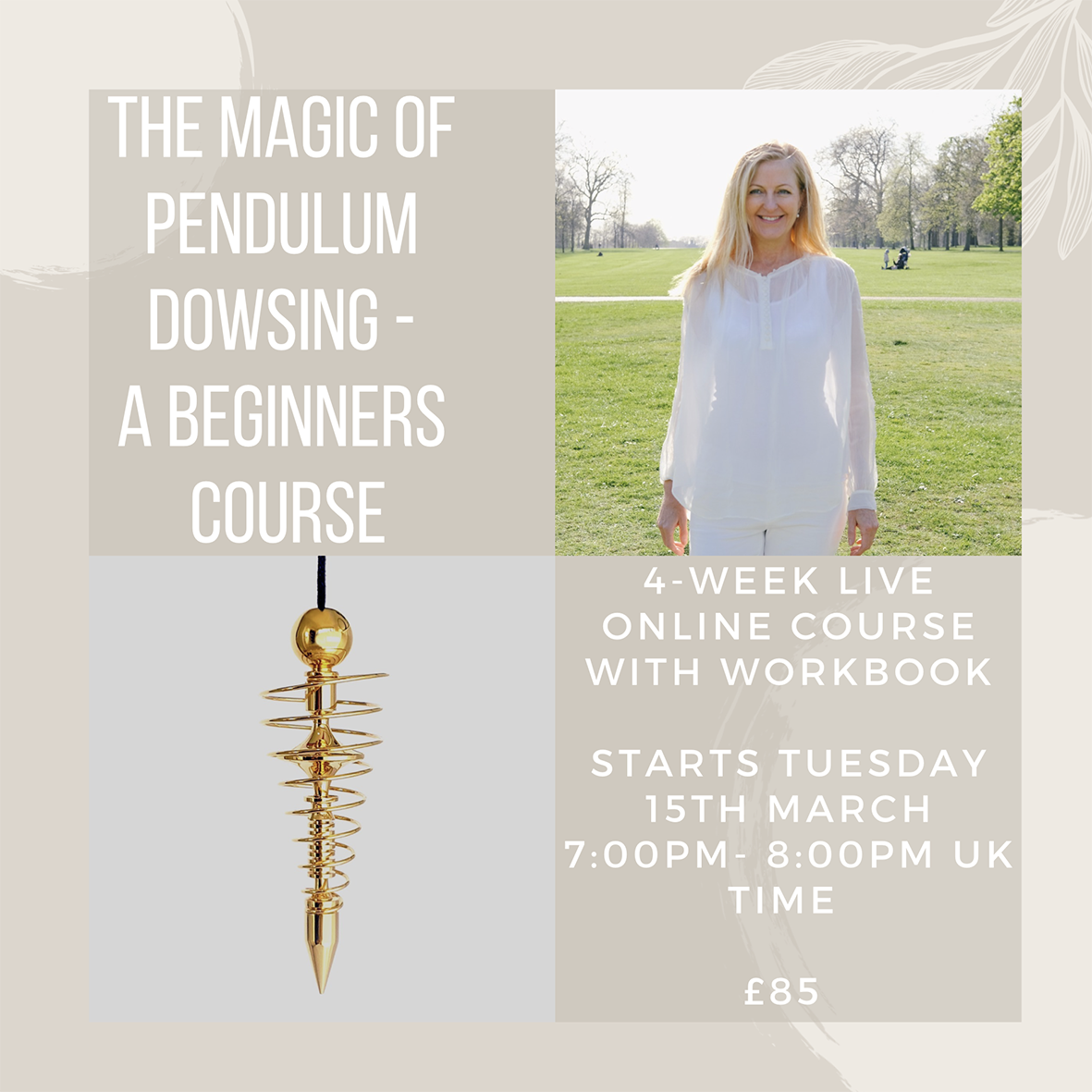 A 4-week live online course which teaches you the basics of using a pendulum to dowse your energy, wellbeing and much more. Over 4 weeks you will learn which pendulum to use, how to set up your pendulum, various techniques to receive yes and no answers, and refining the right questions to ask of your pendulum. You’ll also receive two workbooks with charts to use as a guide. It’s a fun and informative workshop if you have an interest in learning more about how to use a pendulum.